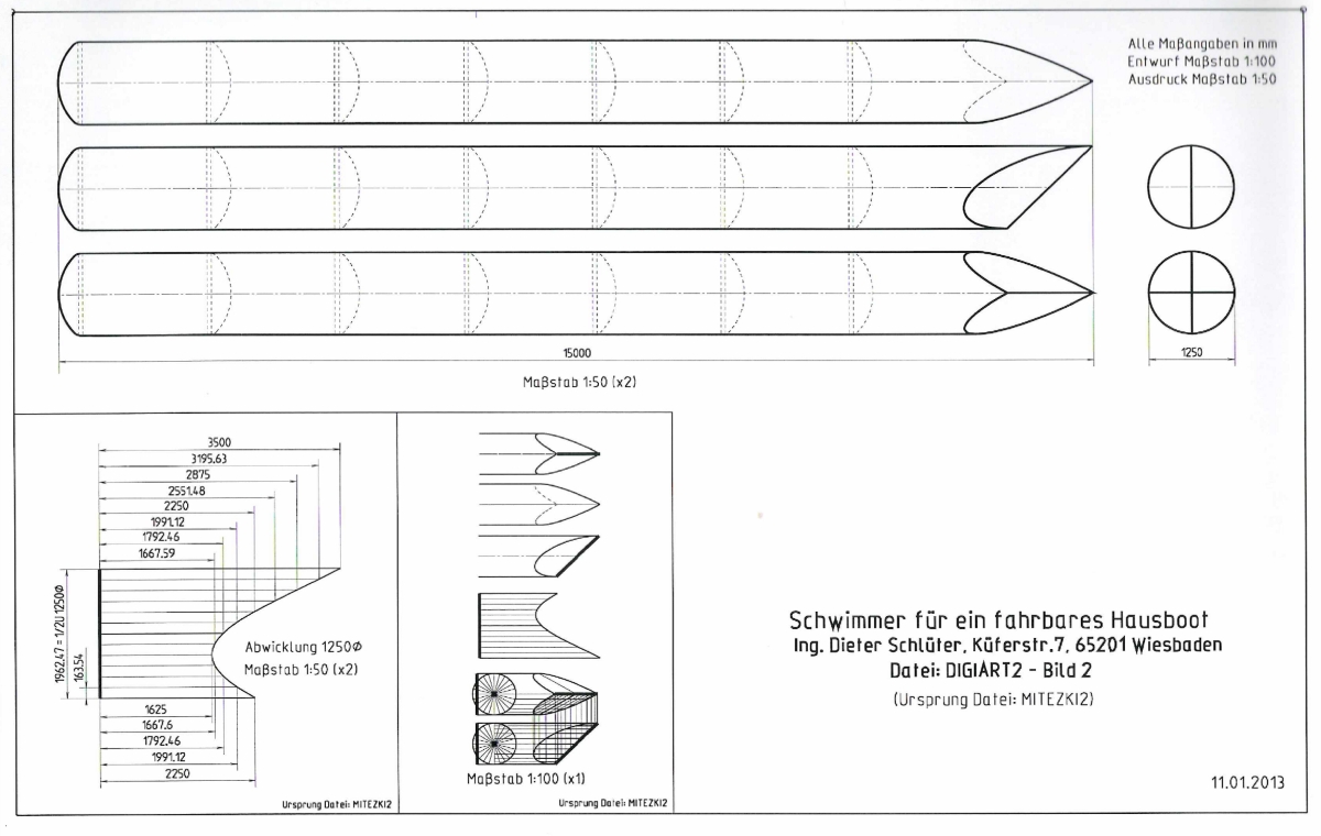 Entwurf einer Schwimmerkonstruktion aus ausrangierten Gastanks