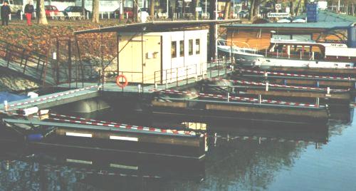 Hauptstegen, die jeweils an 3 Dalben geführt werden. Auch hier besteht